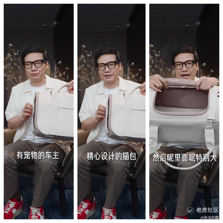 而最近,根据全球宠业出海洞察报道 ,随着2025年6月份小米YU7的上市,小米还配套推出了一款猫包。雷军在社交媒体上通过短视频特别安利了这款专为YU7车主设计的猫包配件,体现了科技企业对宠物出行的深刻理解。