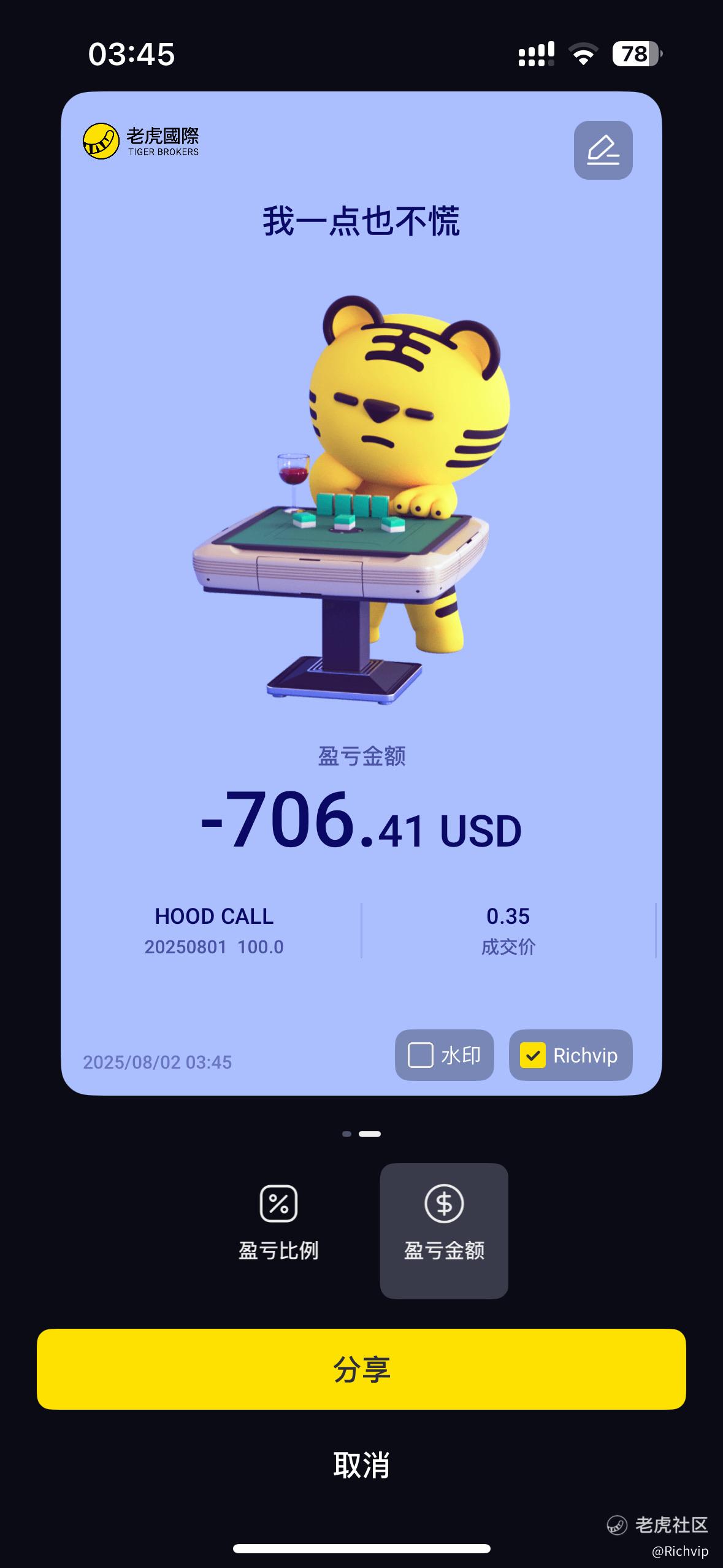 昨晚是传统的周五“末日期权”,由于财报前7月30日做完几手罗宾汉的卖方财报策略后,账户还剩一点钱就随手做了一手hood call 20250801 100的看涨期权7.35刀;对于罗宾汉得财报我还是很看涨的。不过,这手买方期权跟另外一手同期裸卖130call形成了一手垂直价差策略;这也是我没想道的[叹气] 财报出来前,标的股价一直在107~110之间盘整,这手垂直价差最多时赚100刀;我也没管它,价差是145的预期收益,我一般是90%止盈;没想到错过最佳时机。[汗颜]