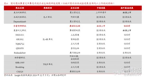 此外,国内还有康乃德/先声乐德奇拜单抗(CBP-201),智翔金泰,麦济、恒瑞医药(SHR-1819),三生国健(SSGJ-611)和康方(AK120)等多家公司针对IL-4Rα靶点在AD等领域进行开发,但无论是开发进度,还是临床效果,目前来看对比CM310均处于劣势。乐德奇拜单抗(CBP-201)刚刚提交上市申请,其它IL-4Rα类单抗仍处于临床三期。