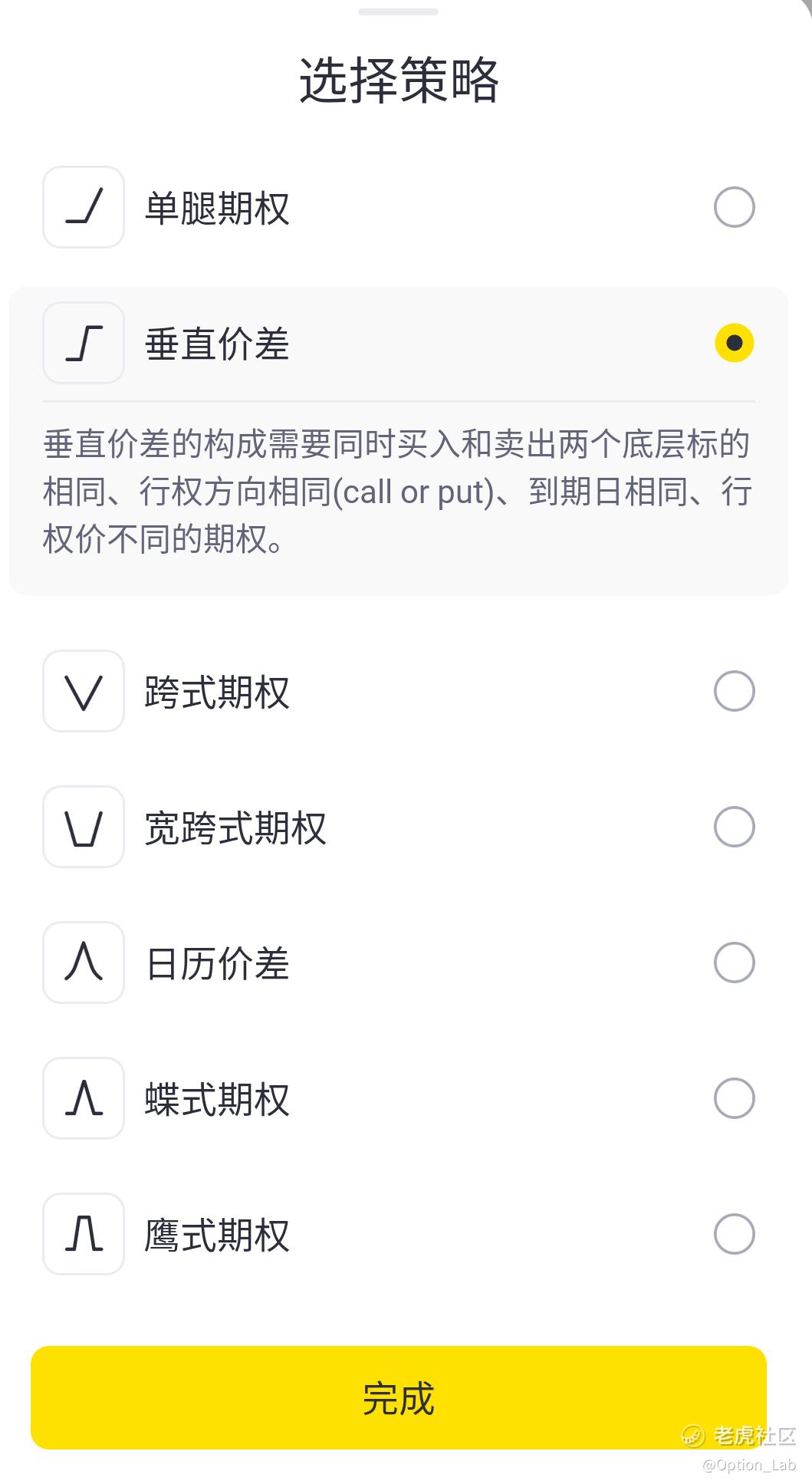 · 执行稍微复杂:需要同时交易两个期权合约,最好选择能支持一次下单、同时成交的券商平台(在老虎App中,可以一键选择单腿或多腿期权策略哦)。