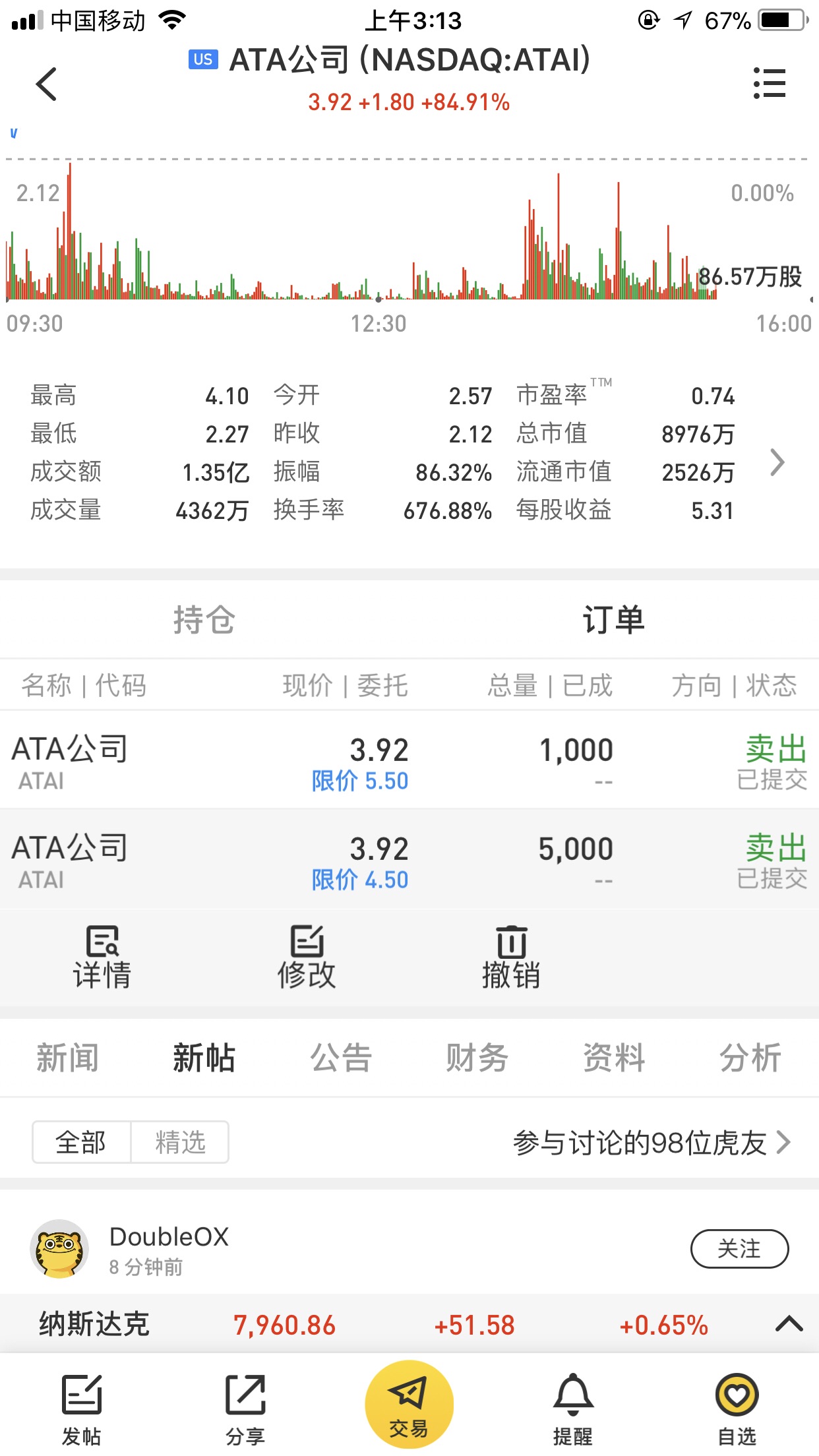 哥们,挂4.5那个成交了吗?我看最高到了4.5,然后一下就下来了