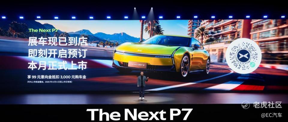 (2025年8月6日,北京)今日,小鹏汽车在北京举办「THE NEXT 全新小鹏P7·中国首秀」发布会,新车正式亮相并开启预订,共发布3款车型,分别为702km长续航版、820km超长续航版、750km高性能版。2025年8月6日至全新小鹏P7上市日,预订用户可享99元意向金抵扣3000元购车金的权益,同时可与上市权益叠加使用。