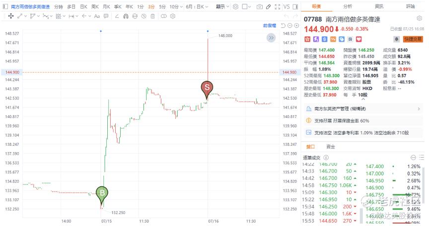具体操作也很简单,我奶奶也能执行:香港时间7月15日一听到消息立刻买入英伟达2X的产品,并在当日收盘卖出,在风险非常可控的情况下以公开信息抢跑,获得单日丰厚利润。