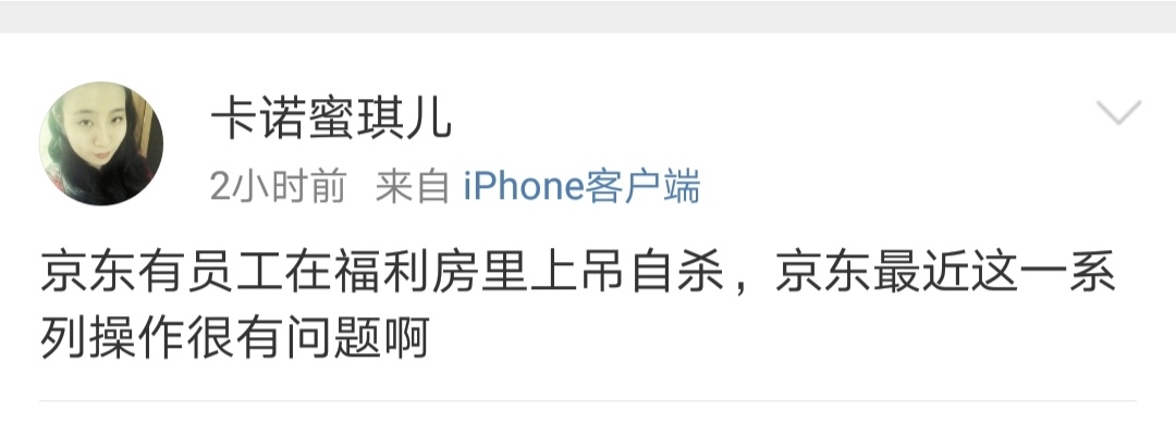 $京东(JD)突发,京东员工在福利房上吊自杀!