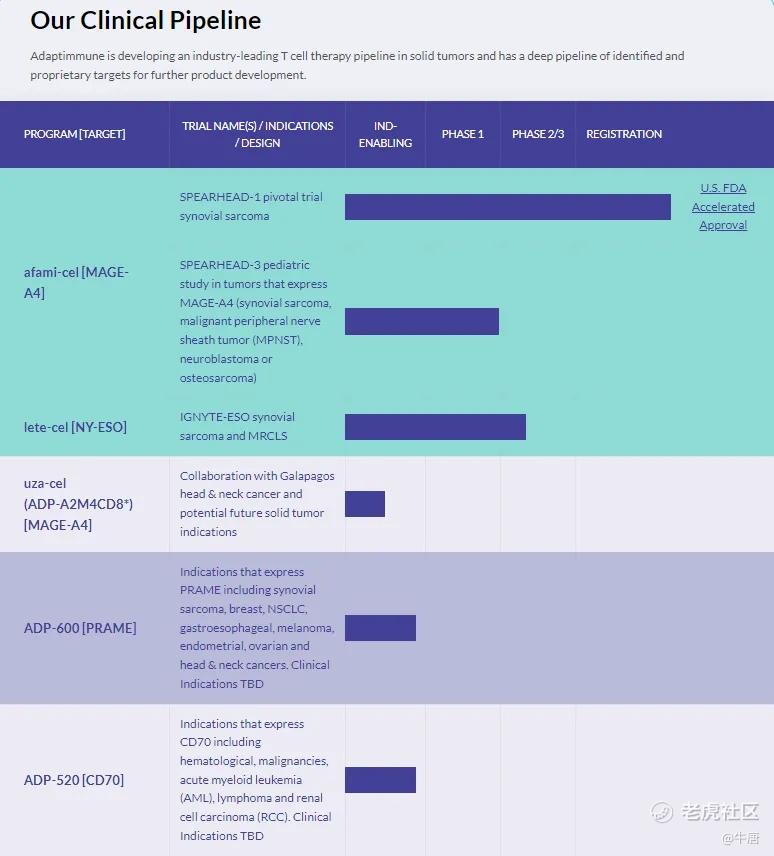 此次Adaptimmune出售的资产多达四款,其中包括已经获批上市的Tecelra、预计2026年上市的靶向NY-ESO-1实体瘤TCR-T疗法lete-cel,下一代MAGE-A4药物uza-cel(与Galapagos合作)与afami-cel。