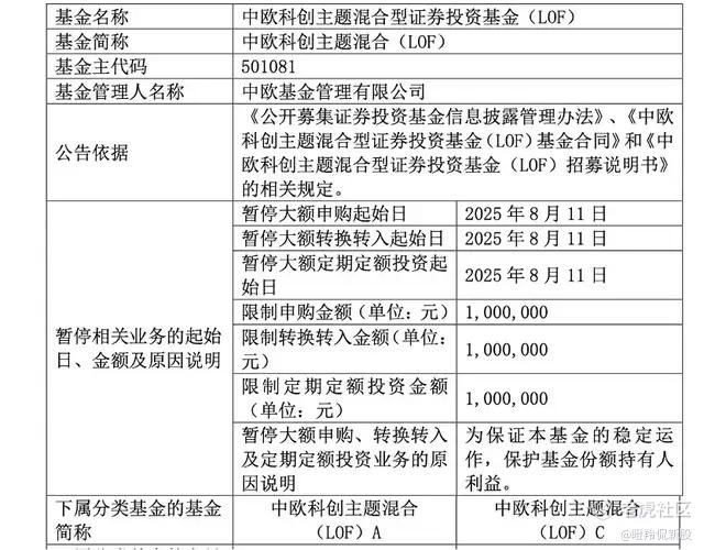8月9日,中欧基金称,为进一步保证基金稳定运作,保护基金份额持有人利益,葛兰管理的中欧医疗创新单日单账户限购10万元;同日,邵洁管理的中欧科创主题也进行了100万元的限购。