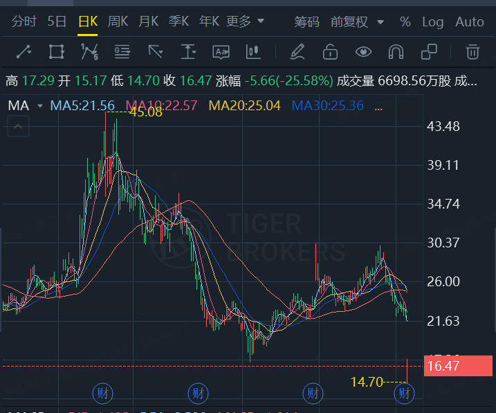 技术面/筹码面简评: 技术上,C3.ai股价已跌破近期多条均线并逼近2024年以来低位(52周最低约14.7美元),显示明显超卖状态。8月11日的巨量下跌意味着盘中出现大规模套现,筹码集中在低位重组中。若短期无新利好刺激,股价或需时间消化调整;但从长期来看,若业绩反弹与管理层稳定,亦可能引发逢低买盘。总之,目前技术面风险偏大,需关注后续成交量和支撑位表现。