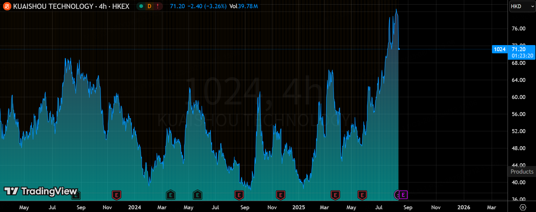 无独有偶,8月12日盘面上,港股的AI集成应用软件公司 $快手-W(01024)$ 、 $美图公司(01357)$ 、 $金蝶国际(00268)$ 等,也在经历者投资者撤离的现状。