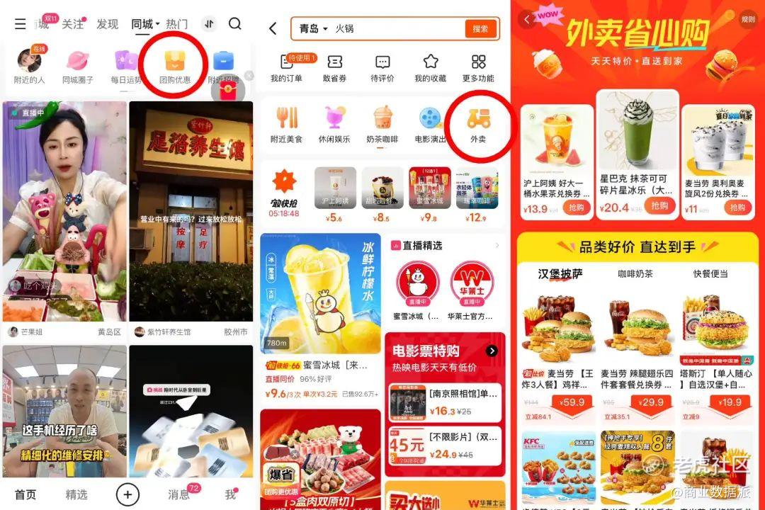 快手和抖音的外卖业务相似,都是以“轻资产合作+内容导流”为主。但相比快手的“纯外卖”,抖音外卖侧重“到店+到家”双场景服务,通过“随心团”业务整合团购与外卖服务,支持到店核销或配送到家。
