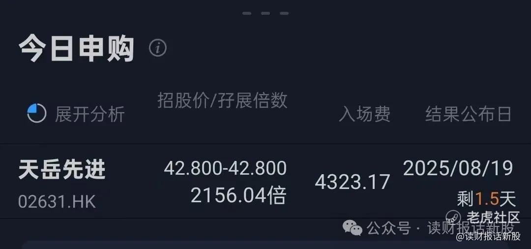 软件显示天岳孖展已经2150倍了,由于延期了一天,所以孖展会多一点,最终可能比之前财哥预测的2500倍高一丢丢
