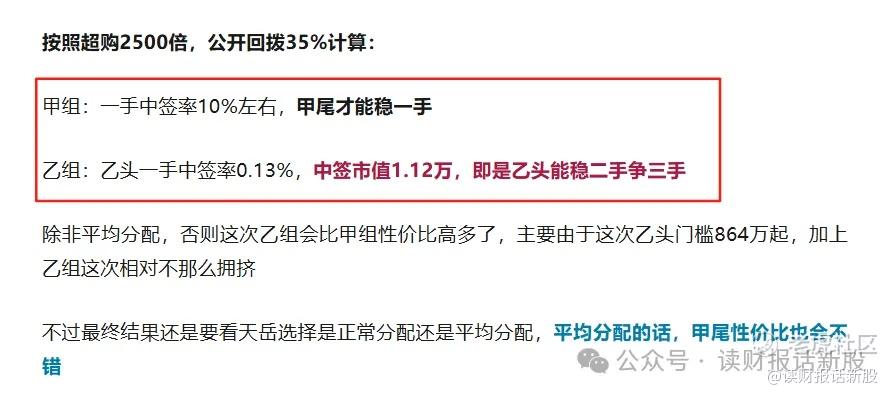 高一丢丢的话,其实中签率几乎也没什么影响,因此,维持昨天公号文章上对天岳的中签率预测: