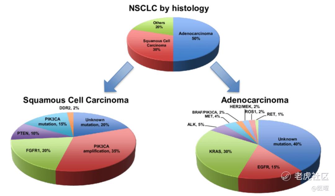 所谓“野生型”,其实是一个相对概念。肺癌细胞中常存在驱动肿瘤生长的基因突变,如EGFR、ALK、ROS1等,这些含有基因突变的肺癌即被称为“突变型”。通过基因检测,若未发现某基因突变,即为相应基因的“野生型”。在全部NSCLC患者中,EGFR野生型的占比高达70%-85%,涵盖几乎所有的鳞状细胞癌和大部分的肺腺癌患者。