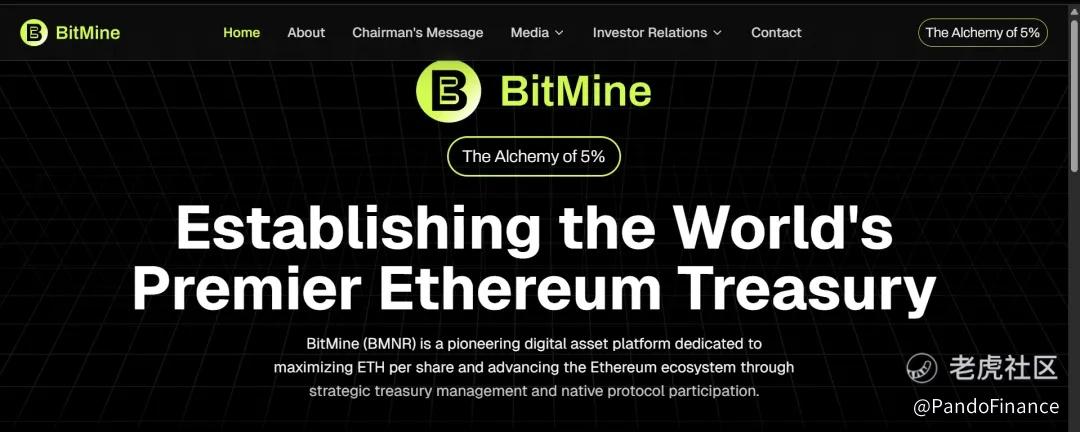 BitMine Immersion Technologies (BMNR) $BitMine Immersion Technologies Inc.(BMNR)$ 是一家总部位于拉斯韦加斯的公司,最初专注于比特币 (BTC) 挖矿,近年转型为以太坊资产储备公司,目标是成为「以太坊的 MicroStrategy」。该公司于 2025 年 6 月宣布以太坊储备策略,计划透过现金流再投资与资本市场活动,持有全球 5% 的以太坊流通供应量(约 603.5 万 ETH)。