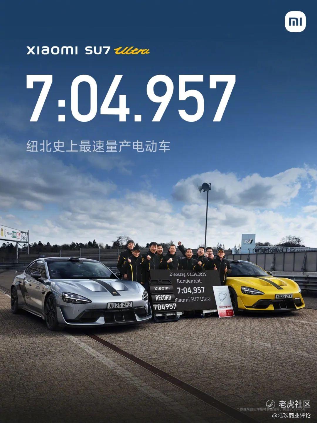 在汽车领域,本季度小米SU7 Ultra原型车再次征战纽北,以6分22秒091的成绩刷新小米此前创造的全球最快四门车圈速纪录,成功进入纽北圈速总榜全球第三。此前,小米SU7 Ultra量产车也在纽北刷圈,以7分04秒957的成绩成为纽北史上最速量产电动车。