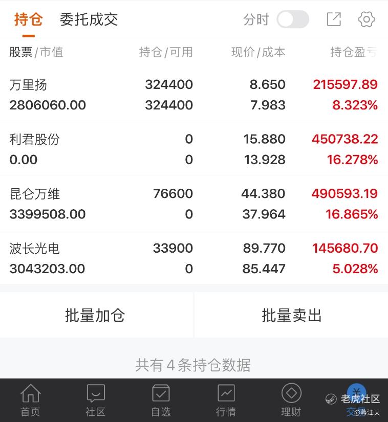 今天受昨晚突发影响,今天国产芯片单边上涨,独立走强,盘中一度出现大阳,但个股超三千只下跌的极端分化,这里回头看,本轮行情的特点,就是结构性分化强势,某个方向集中走强一周,又进行轮换,然后不断往复,后续需要参照当前的市场偏好特点,去思考挖掘下一个方向是什么$万里扬(002434)$ $昆仑万维(300418)$ $波长光电(301421)$ $利君股份(002651)$ $安妮股份(002235)$
