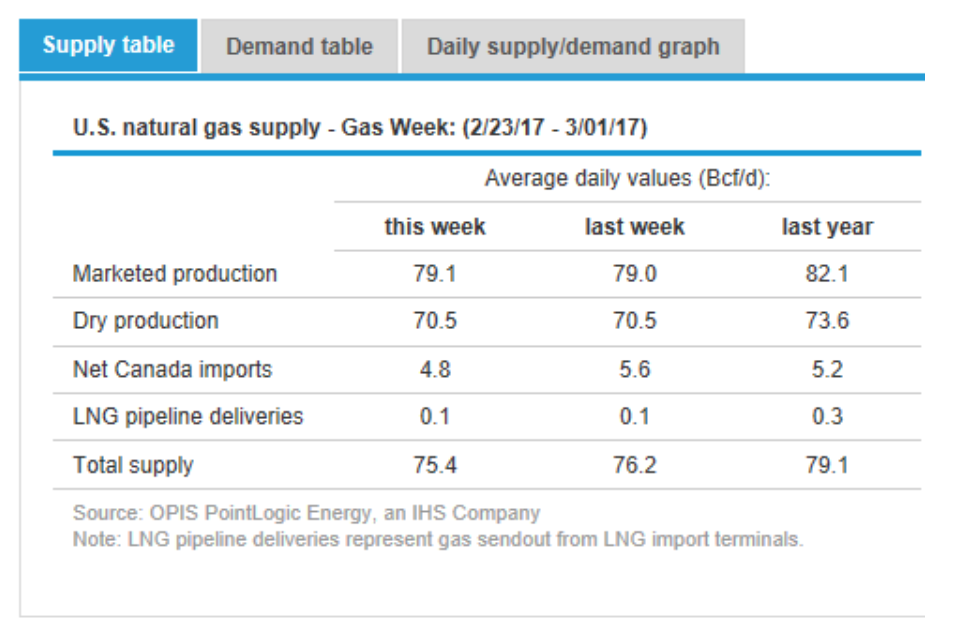 - 供应量减少是因为进口加拿大天然气减少。而干气的周间产量几乎没变。