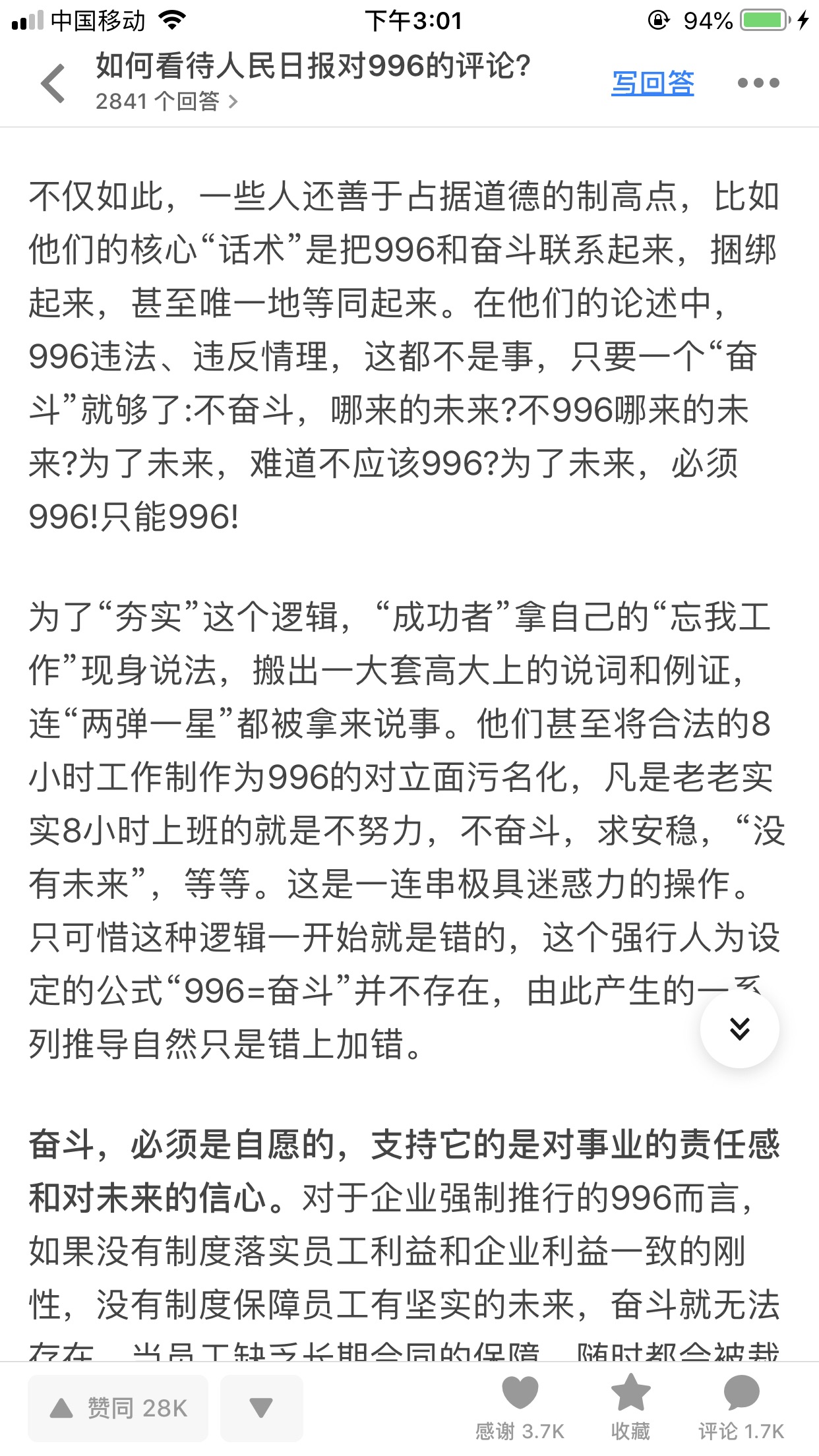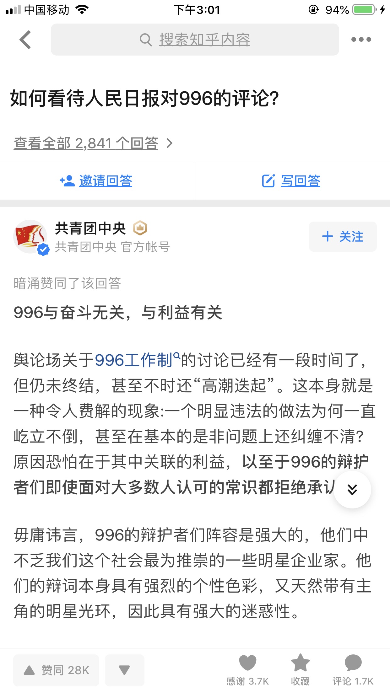 $京东(JD)$ $阿里巴巴(BABA)$ 关于996。图片来自知乎截图。