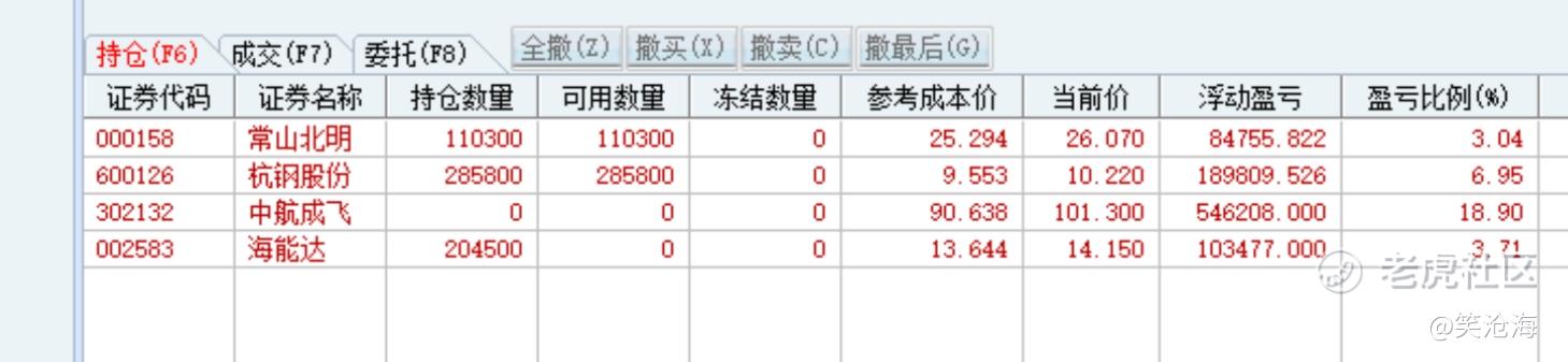 今天市场三大指数集体大涨均创阶段新高,成交量突破3万亿创历史次高,盘中的跳水可以当成一种演习,周末发酵那么厉害,不进来点就不正常了,还是吓人的成分多点,现在想大跌很难,所以不用太在意盘中的调整,每次大的回落都是机会,市场还会朝着四千点进发,真要小心的是九月底或者十一假期结束后$中航成飞(302132)$ $杭钢股份(600126)$ $常山北明(000158)$ $成飞集成(002190)$ $海能达(002583)$