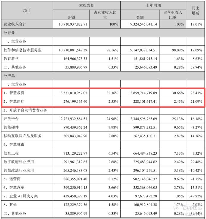 其一是收入与现金流的改善,营收109.11亿元中,智慧教育业务收入35.31亿元,同比增长23.47%,智慧医疗业务收入2.76亿元,增长21.09%。