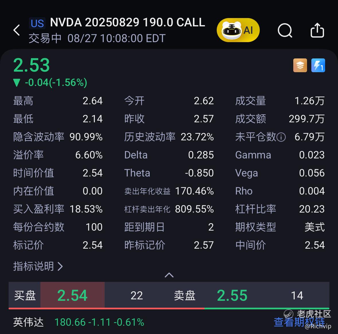 $英伟达 VERTICAL 250829 CALL 202.5/CALL 190.0$ 英伟达财报策略,小资金如何做到“百发百中”?
