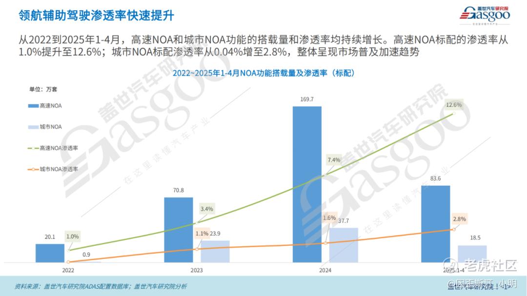 我无需写出NOA的全称,屏幕前的你也大概知道高速NOA和城市NOA是什么意思,欢迎来到智驾平权时代。从高端溢价到中低端必配,以今年2月比亚迪将“天神之眼”下沉至10万元车型为标志性节点,小鹏、吉利、奇瑞、长城、广汽、长安等车企全面发力,推动10-20万价格区间高阶智驾渗透率迅速提升。