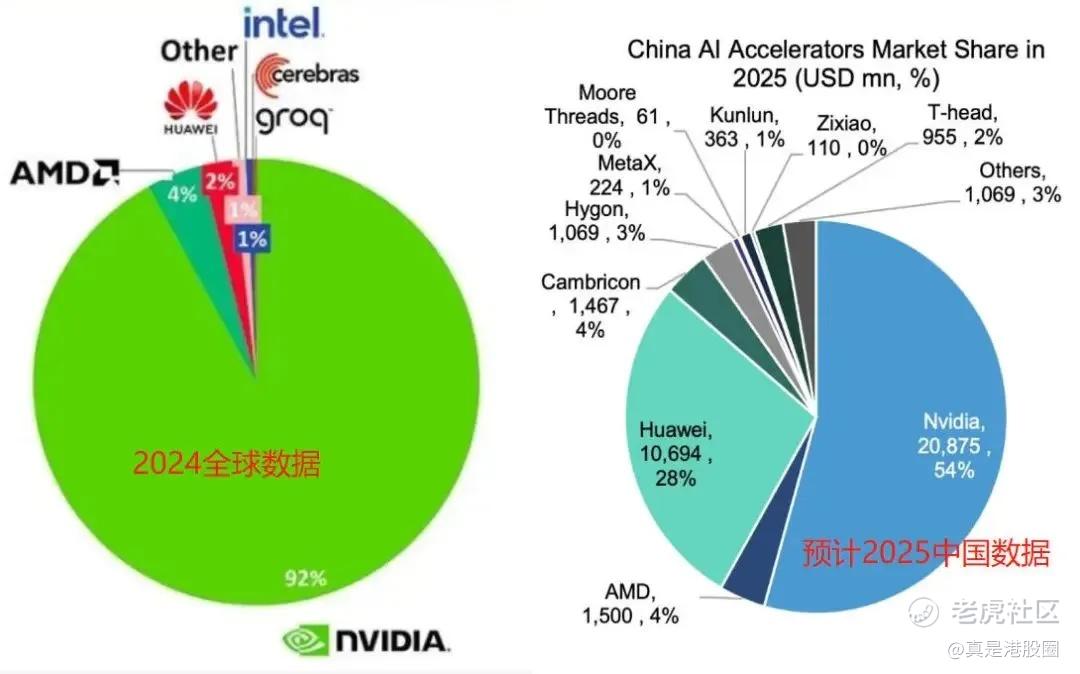 但寒武纪的上市身份,给了大家不切实际的印象,仿佛能接过英伟达份额的,只有寒武纪。