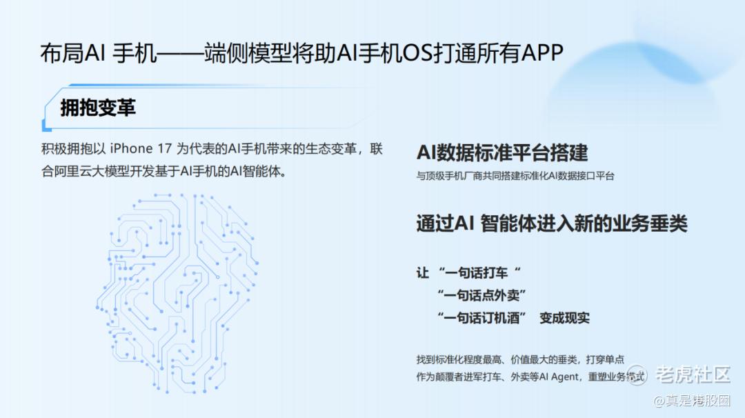 当前行业都认一个理:AI手机要改写传统流量玩法。以后用户不用手动开 APP,喊一声就能触发服务,流量入口会从“主动搜索”转向“AI 推荐”。