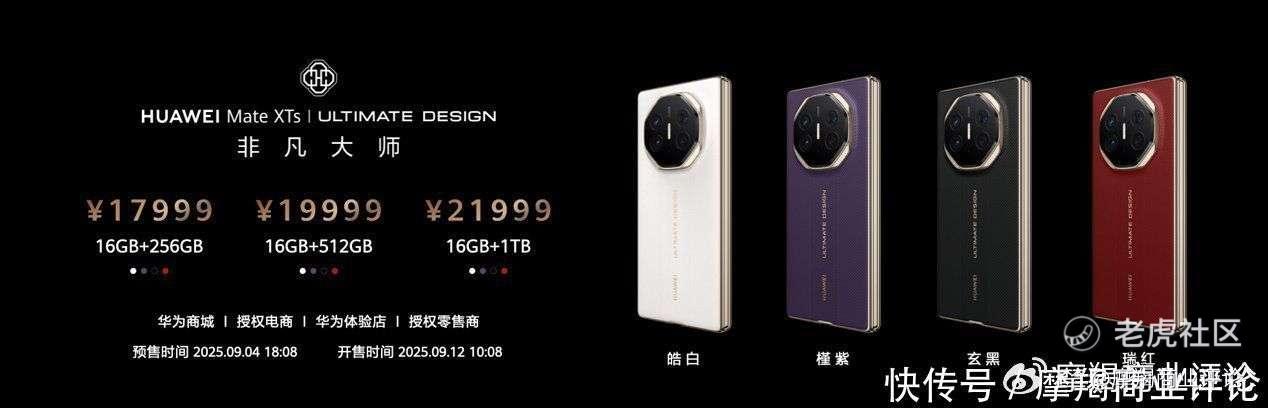 2025年9月4日,**Mate XTs 非凡大师及全场景新品发布会在深圳隆重举行,正式推出全新三折叠**Mate XTs 非凡大师,一同亮相的还有**ULTIMATE DESIGN非凡大师全新徽标。同时,**智慧屏 MateTV、**MatePad Mini、**FreeBuds 7i等多款全场景重磅产品发布。