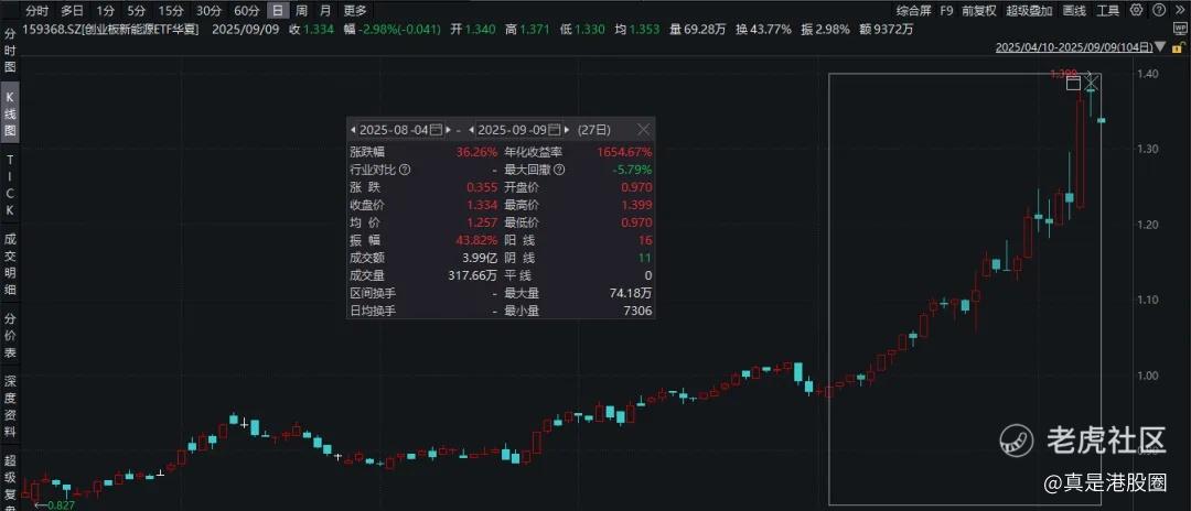 所以,我们能看到新能源板块的表现不错,而根据产业链的需求来看,新能源的行情可能只是刚刚开始,若想参与A股新的主线行情,可以通过创业板新能源ETF华夏(159368) $创新能源(159368)$ 来参与,自8月份以来涨超36%。