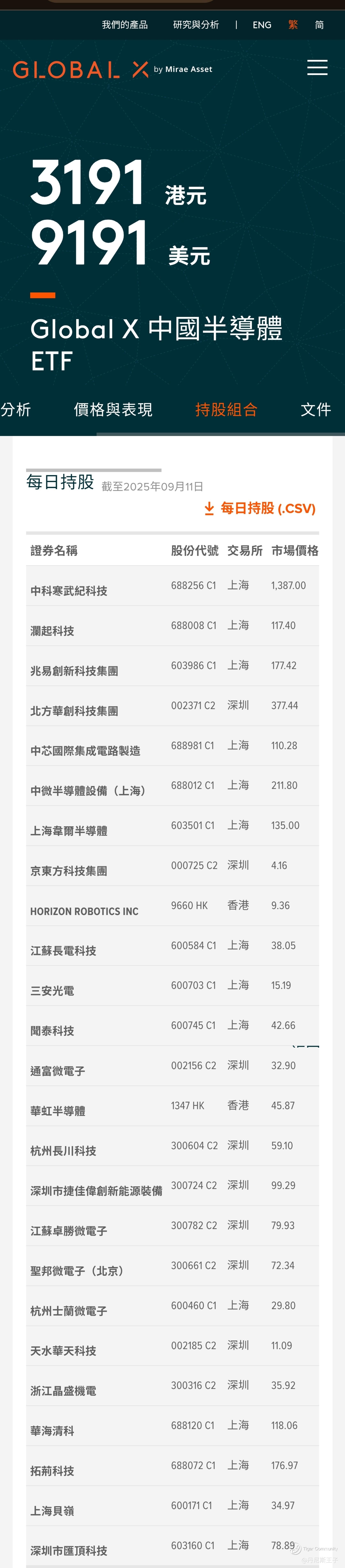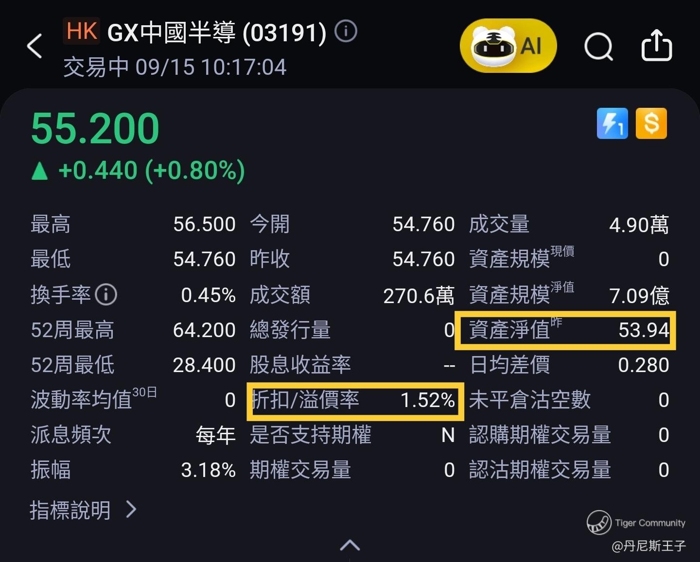 留意:单位净值、 溢价、于发行商看ETF 每日持股组合、走势图)