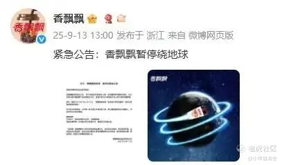 9月13日,$香飘飘(603711)$ 突然甩出一份“紧急公告”:《香飘飘暂停绕地球》。