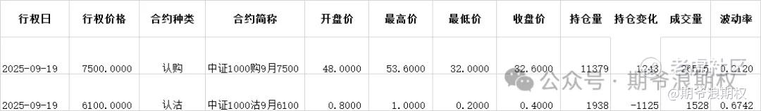 (4)中证1000期权:9月最大持仓范围7000-7500,今收7415.57,下跌0.10%,期权9月主力合约,认购以增仓为主,集中在7400-7700,合计3000张,增仓集中在7500-7600,合计1600张;认沽以减仓为主,集中在6100-7100,合计3600张。 变化超过1000张的仓位如下图: