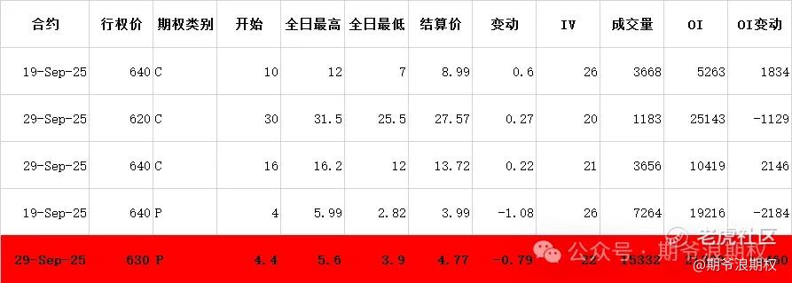(1)腾讯:9月最大持仓范围500-620,窝轮牛熊街货分布590-705,今收645.0,上涨0.23%,期权盘路变化超过1000张的仓位如下,红色是增仓较大的。总的来说,9月份630是一个有利的支撑位,突破700只是时间问题,快的话这个月,慢的话下个月。