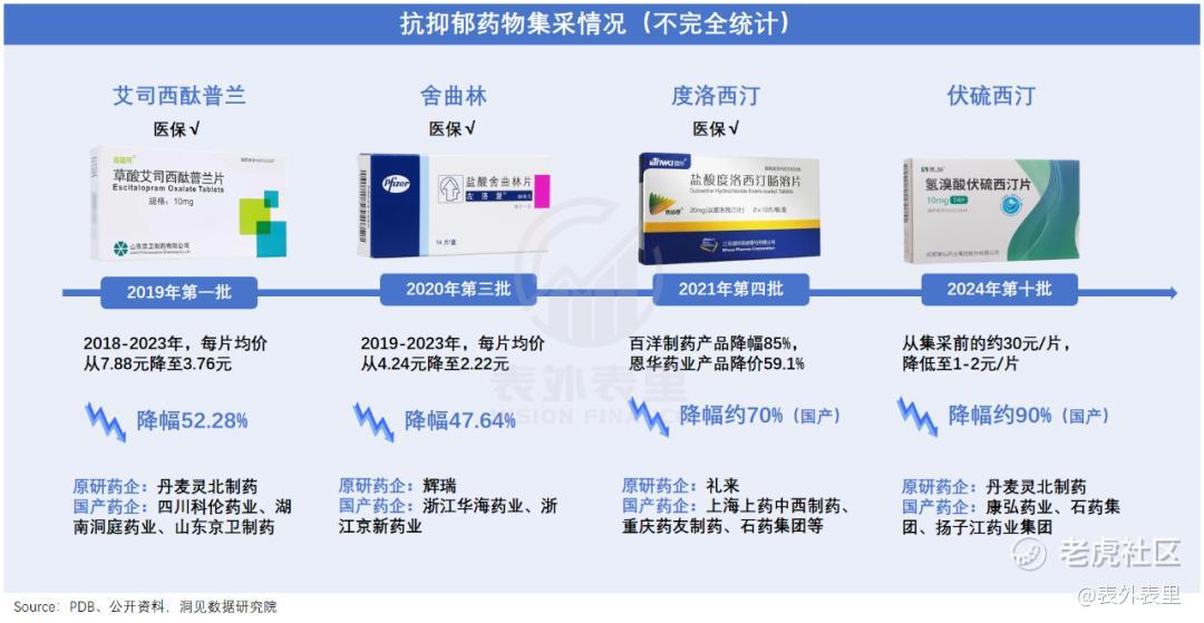为此,曾经高高在上的原研药,也被迫挤出价格水分、低头迎战。“这也抗抑郁药用药量增加,但市场销售额却下滑的原因。”大雷解释道。