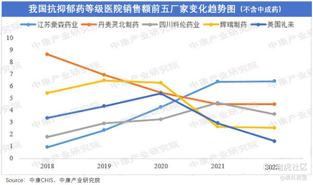 整体来看,随着多轮集采推进,抗抑郁药在等级医院销售TOP5厂家已重新洗牌,本土药企吞下了更多市场份额,豪森等企业逐渐占据领先地位。