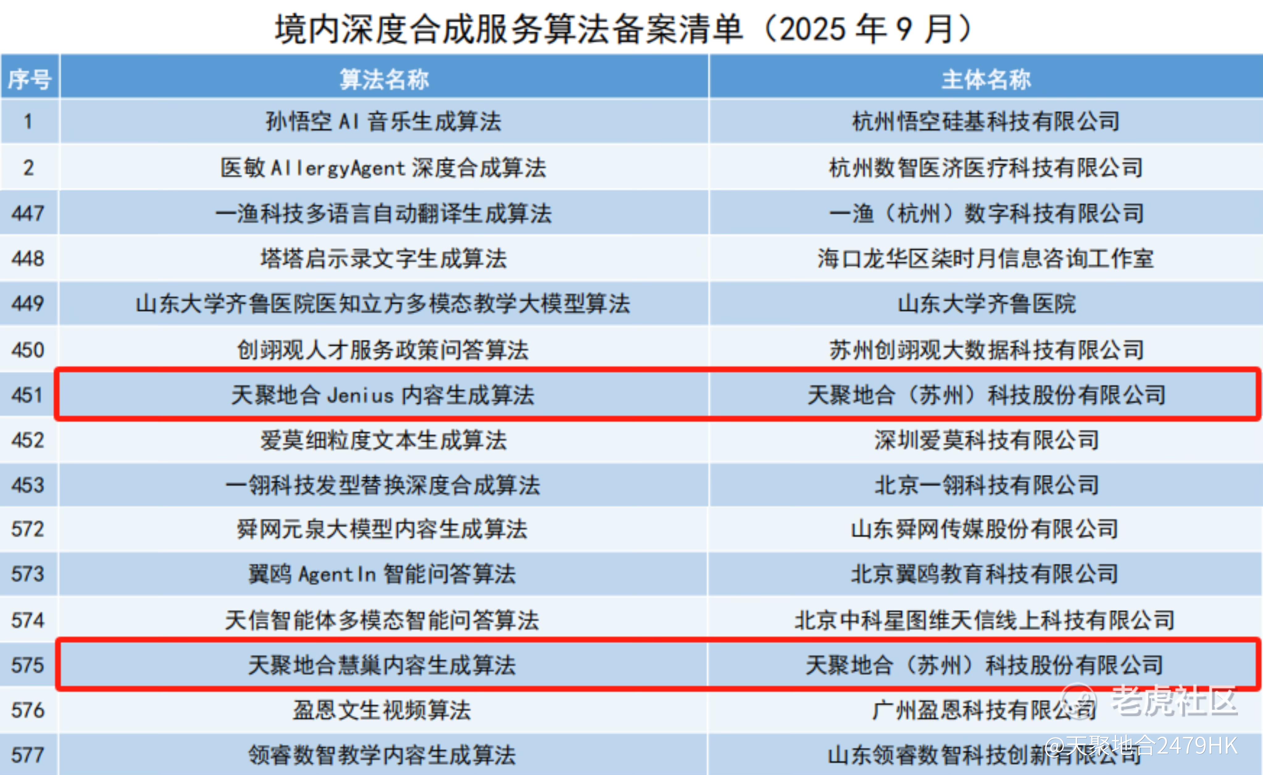 9月11日,国家互联网信息办公室已发布第十三批深度合成服务算法备案信息公告。天聚地合(苏州)科技股份有限公司旗下天聚地合Jenius内容生成算法、天聚地合慧巢内容生成算法正式通过备案,标志着公司在内容生成算法领域的技术实力和合规管理获得国家级认可。