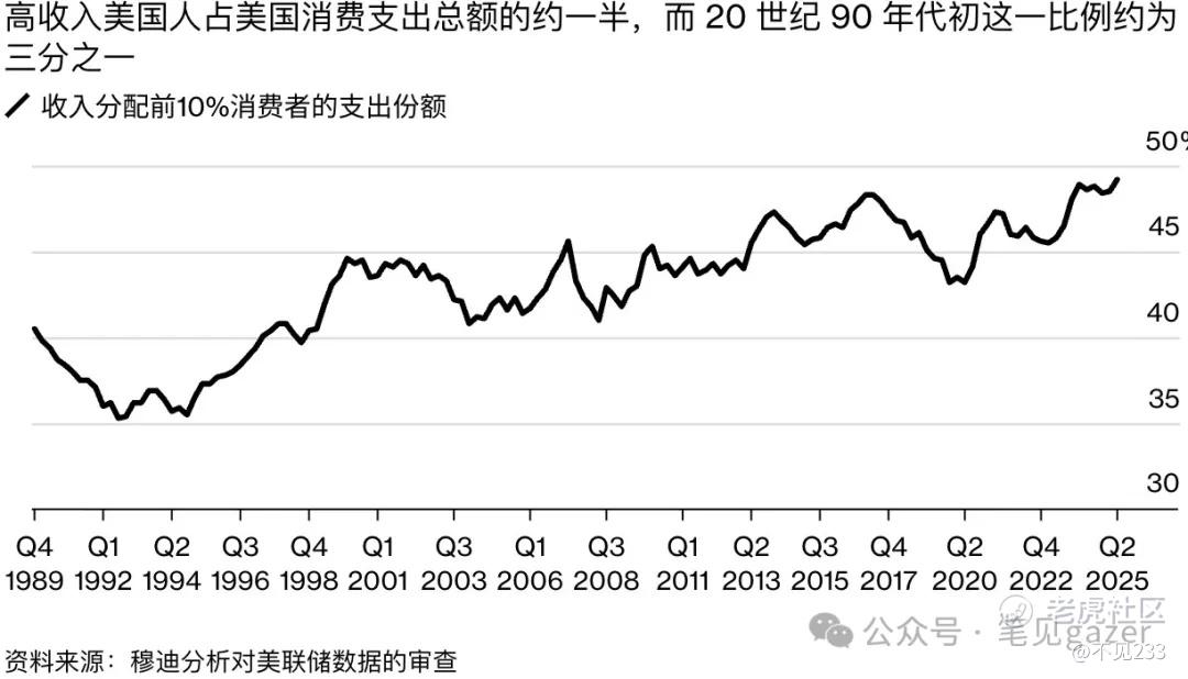 美股在消费市场的正反馈循环中,推动了多大的贫富差距?同时又推动多少财富效应?仅从消费来看,结合劳动力市场的”疲弱“,多少消费经济动力不是来自广义劳动力部门的名义工资收入(含实际通胀),而是依赖股票上涨维持?