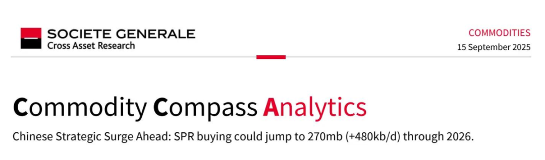 法国兴业银行于9月15日发布一份研究报告,称中国战略石油储备(SPR)采购即将进入关键阶段,其规模与时机选择将对全球原油市场产生重要影响。法兴报告预测,到 2026 年,中国SPR 采购量或增至 2.7 亿桶,日均新增采购量达48万桶,这一规模相当于全球日均原油需求量的近 0.5%。