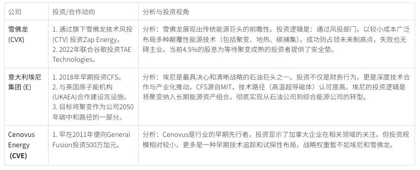 此类公司面临严峻的能源转型压力,投资核聚变是构建未来能源版图、重塑绿色竞争力的关键一步,旨在为后化石能源时代做准备。