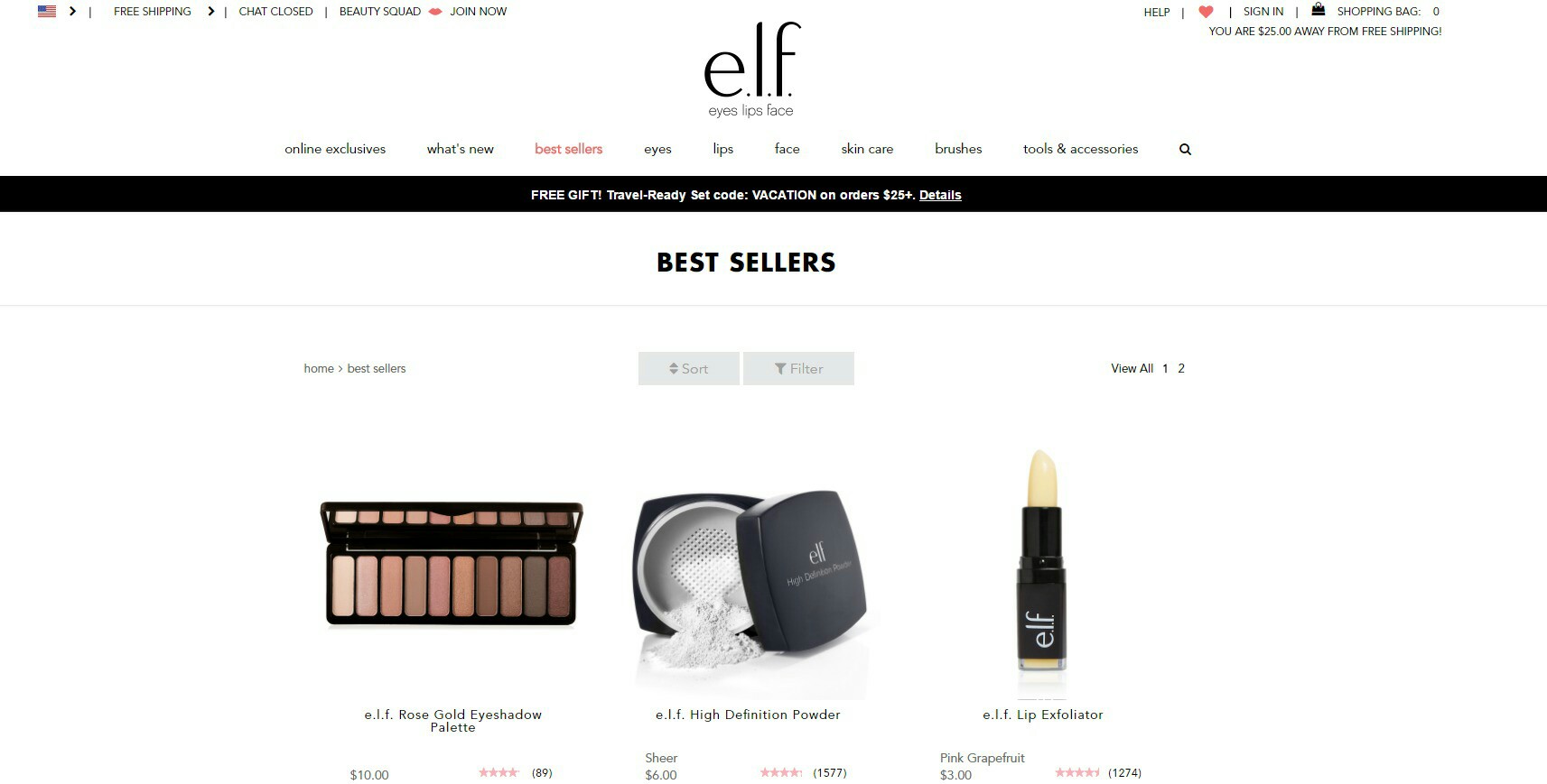 从图中我们可以看出e.l.f.的近期Best Sellers分别是玫瑰金眼影盘,散粉以及唇部磨砂膏,只有几刀的产品却拥有了上千好评,可想而知高性价比的e.l.f. Beauty在低端市场是多么受欢迎。