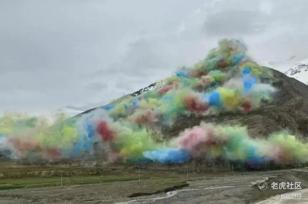 始祖鸟品牌出钱赞助、蔡国强设计执行,在西藏喜马拉雅山脉海拔5500米的江孜热龙地区,在山脊上连绵数公里埋放火药,引爆三次,搞了场命名为「升龙」的所谓的艺术烟花。