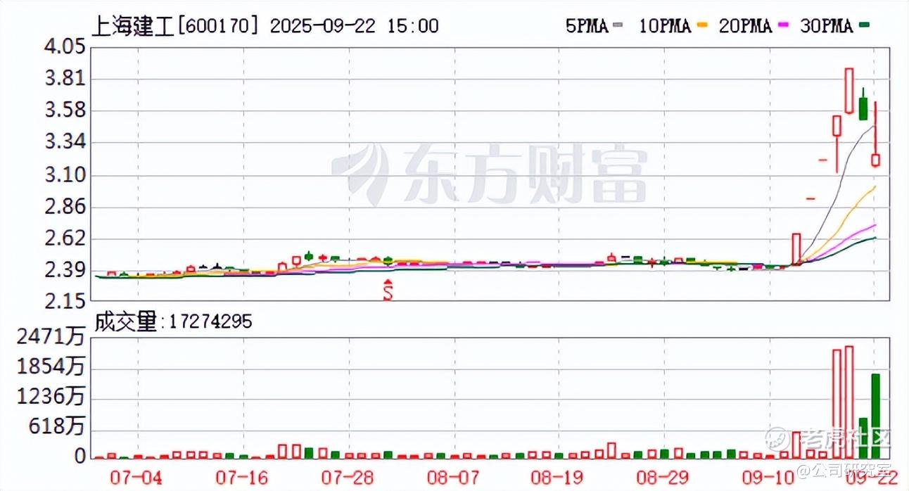毕竟,像上海建工(600170.SH)那样,因为上海爷叔发牢骚而突然爆发,股价连续5天涨停的事情,恐怕是十年难遇。而且,从这只股最近两天走势看,除非上周四见好就收,否则,股价恐怕很快又要回到3块以下了。
