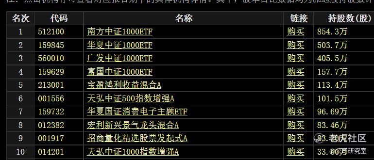 以和而泰为例,1季度时仅6只基金持仓1751万股;二季度末,则有113只基金,持仓2808万股,排在最前面的是:南方中证1000ETF、华夏中证1000ETF、广发中证1000ETF、富国中证1000ETF,分别持有854.3万股、503.7万股、405.6万股、157.7万股。