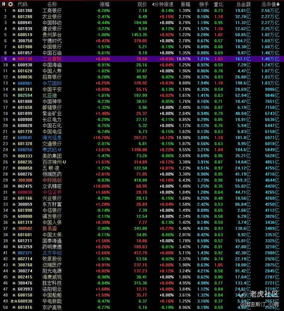 top10点个名,工商银行、农业银行、中国移动、建设银行、贵州茅台、宁德时代、中国银行、中国石油、工业富联、中国海油,再看西大的top10,英伟达、微软、苹果、谷歌、亚马逊、Meta、博通、特斯拉、台积电。