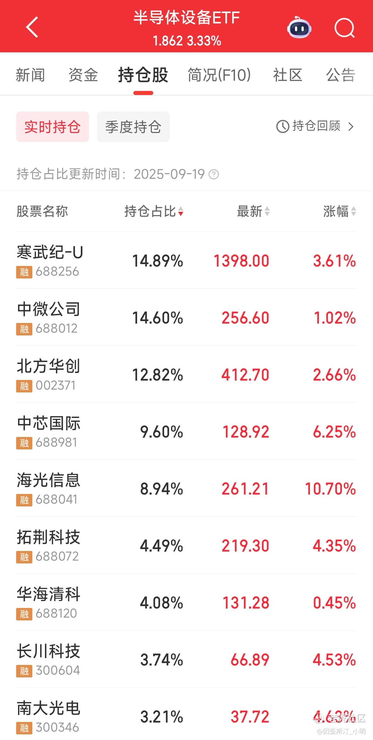 当前国产链成分配置最好的ETF就是 $半导体设备ETF(561980)$ ,全场唯一同时配置科创三巨头和核心设备商的被动指数基金。在此前的反弹中,持仓占比超六成的top5权重中,中芯国际、海光信息、中微公司、北方华创均创下新高,剩下没新高的那个更是一堆科技ETF的核心权重。绊倒体设备的重要性也随着村龙的逻辑展现出来,不仅仅是因为在科技中还处于相对低位,9月上旬大基金三期首个产业投资项目,就投给了绊倒体设备领域的拓荆科技。随后无论是国产技术突破还是扩产预期,都离不开设备。anyway,一个包含着本轮科技主线核心权重和一篮子设备商的配置组合,毫无疑问是科技国产链的最佳选择,没有之一。当前指数风险尚未消除,一旦确认重返震荡or上行,继续保持科技的配置主线地位。另外,南边的价值科技也可以通过 $科技HK50(159750)$ 打包带走,行业方面多配了一些汽车与医药,以业绩驱动为主,当前A股和港股的科技主线,基本这两个方向。