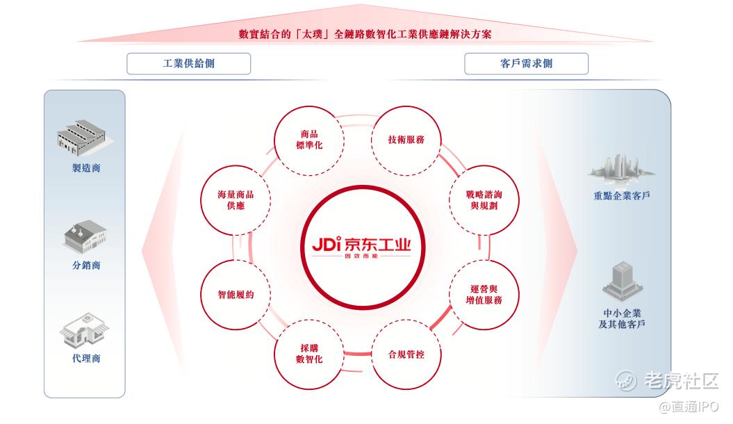 京东工业招股书显示,作为一家工业供应链技术与服务提供商,该公司通过践行变革性的工业供应链数智化转型,帮助客户实现保供、降本、增效及合规。该公司主要通过“太璞”这一“数”(数智)、“实”(商品)结合的全链路数智化工业供应链解决方案,提供广泛的工业品供应和数智化供应链服务,以满足客户的多样化需求。“太璞”建立在其端到端的供应链数智化基础设施之上,涵盖商品、采购、履约及运营。