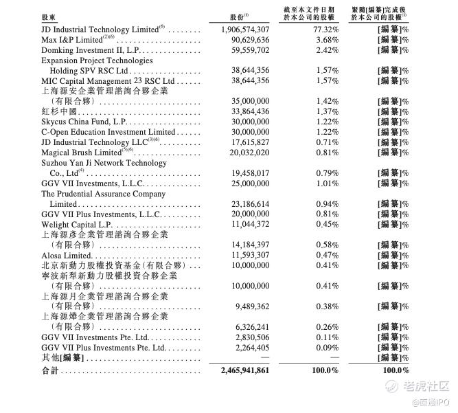 IPO前,京东集团通过其全资子公司持有京东工业已发行股本总额的约77.32%;刘强东则通过Max I&P Limited持股3.68%。