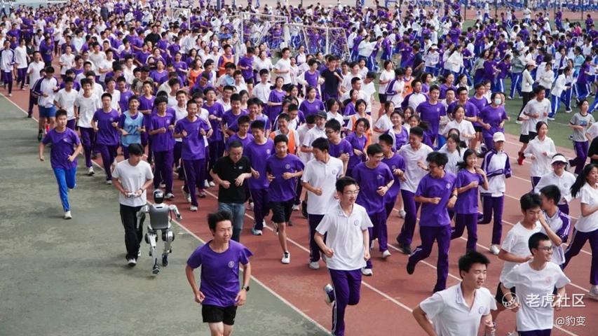 松延动力N2“小顽童”机器人在清华附中领队跑操 图片来源:“松延动力”官方公众号