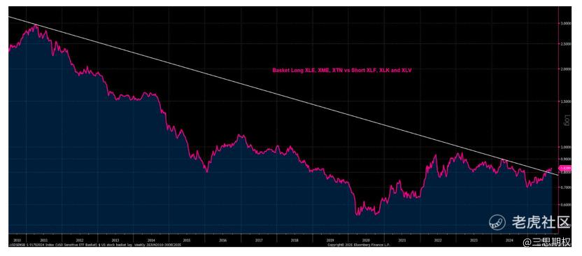图:多一系列商品ETF的同时空一系列科技ETF的美股策略收益已经跨越历史阻力线