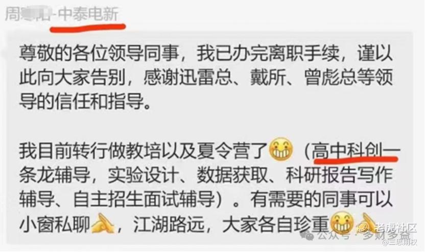 也还有更近的例子。像是6月底的时候,某电新团队分析师宣布转行教培,在业内引发了不大不小的讨论。